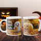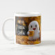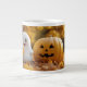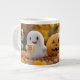 Un fantôme très mignon boit du latte d'épice citrouille (je suppose) avec son ami jack (ou lanterne). Buvez votre café d'automne avec...hem...esprit.
