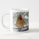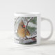 Grande Tasse Cardinal du Nord féminin dans un pin enneigé,