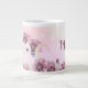 Mug mignon, rose, féminin, kawaii avec des fleurs et un monogramme - nom.