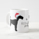 Chiens Airedale Terrier portant un chapeau de Père Noël avec le nom de famille personnalisé sur votre tasse. La couleur de la tasse peut être personnalisée à votre couleur préférée, il suffit de sélectionner 'Cliquez pour personnaliser davantage' pour des options de couleur illimitées.