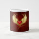 Coeur rouge vif d'un ange aux ailes dorées brillant dans l'arrière - plan rouge foncé et rayonnant décoré d'un motif.