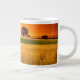 Vue grande-angulaire d'un coucher du soleil rouge sang au-dessus d'un champ de blé d'or. Arrière - plan générique - aucun emplacement
