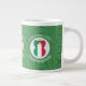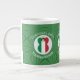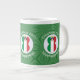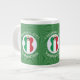 Tasse à café Jumbo pour vous aider à célébrer Noël avec cet ange habillé dans le Drapeau de l'Italie. Cet ange afro-américain vole au centre d'un cercle de carrés blancs, fractaux, dressés dans un arrière - plan de carrés verts. Ajoutez votre nom, ou le nom de quelqu'un d'autre, s'il donne en cadeau, pour personnaliser. Customisez en changeant le ? ? à une année de votre choix pour créer une tasse. Conçu pour compléter votre décor de Noël en cette période de fêtes. Le design est présenté sur trois côtés. Changez la police et/ou la couleur du nom, du jour férié ou de l'année en utilisant l'option "modifier la conception".