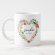 Modern colorful heart shape flowers floral in script grandma and modern est. giant coffee mug.