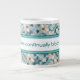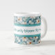 Tasse à café géante dans un turquoise accentué sur ce motif de marguerite à fleurs aquarelle. Les bandes centrales et le texte peuvent être personnalisés à n'importe quelle couleur et message, ou le texte et les bandes sont amovibles.