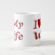Mug avec moi coeur ma femme en texte rouge 3D. Disponible en plusieurs tailles et styles.