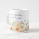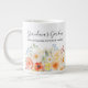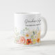 Voici notre Tasse géante florale ensoleillée Jardin de grand-mère personnalisé. Caractérisé par une illustration aquarelle d'arrangement floral avec des couleurs vives. Vous pouvez le personnaliser en ajoutant les noms de votre petite-fille ou de votre fille et une phrase ou une citation mignonne. Idéal comme cadeau pour une grand-mère amoureuse de la nature et des fleurs à l'occasion de la fête des grands-parents ou de la fête des mères.
