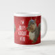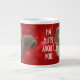 Je suis fou de toi présente ma photographie originale d'un jeune écureuil. Le jeune sujet s'est assis dans cette pose quelques secondes avant que je prenne la photo. Le fond rouge a un motif de cœur rouge subtil. L'image de l'écureuil et le texte sont sur l'avant et l'arrière de la tasse.