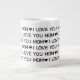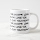 Cette énorme tasse noire et blanche qui dit, "I Love You Mom" en noir toute casquette police moderne avec des accents de coeur entre est parfaite pour donner à votre mère lors de n'importe quel jour férié - Noël, Hanoukka, Saint-Valentin ou fête des mères. Elle va l'aimer comme elle vous aime et sourira et pensera à vous chaque fois qu'elle l'utilise !