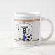 Chemise de maillot de football blanche et noire personnalisée, accrochée dans un vestiaire sportif avec une bouteille d'eau, des matchs de football et un ballon de football. Il suffit d'ajouter le nom et le numéro (ou l'âge) du joueur de football, du fan de football ou de l'entraîneur de l'équipe de football pour créer un cadeau unique de football.