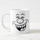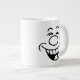 Grande tasse au design léger d'un visage riant. Vous pouvez modifier la couleur de différents éléments de la conception. Pour ce faire, cliquez sur "Modifier cette conception". Dans la section d'édition, cliquez sur l'image et choisissez la couleur désirée pour les différents éléments de la nuance de couleurs.
