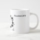 L'Hanoukka de Fête Juive. Ce design noir et blanc présente l'"Etoile de David". Des étoiles entourent l'Étoile de David dans une forme ovale. Les coins sont décorés de feuille et de l'étoile de David. "Hanoukka 2014" est imprimé sur la tasse. Ces tasses sont disponibles dans un assortiment de styles, de couleurs et de tailles.