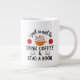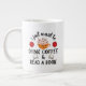 Une tasse à café amusante décorée d'une chaîne d'ampoules et le dicton drôle : Je veux juste boire du café et lire un livre.