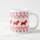 Scottish Terriers Christmas Mug. Cette tasse jumbo fait un grand cadeau de Noël pour les amateurs d'Ecosse. Design amusant avec des Chiens écossais tirant un traîneau avec un écureuil. Visitez le Doodle World de Jenn pour encore plus de produits avec ce design amusant pour chiens, ainsi que plus de cadeaux thématiques pour chiens de races.
