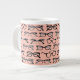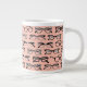 Cette tasse géante présente une variété de différentes lunettes et des cadres de lunettes en noir et blanc sur un rose pâle.