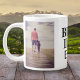 Meilleur Mauvais Père Jour 2 Photo Collage Giant Café Mug. Personnalisez la tasse avec vos photos - insérez deux photos en modèle. Typographie moderne en noir gras Best Dad Ever - vous pouvez changer n'importe quelle partie du texte si vous voulez. Créez le cadeau de jour de votre Père personnalisé pour un père.