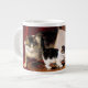 Mug à café mettant en vedette la peinture à l’huile de Henriëtte Ronner-Knip Le mess sur la table (1883). Une chatte mère blanche et brune s'occupe de ses chatons jouant avec de la peinture et d'autres fournitures d'art sur une table. Deux chatons se cachent dans les tiroirs. Un cadeau parfait pour les amoureux de les chats et le romantisme.