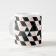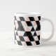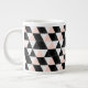 Cette géométrie abstraite présente un motif en noir, blanc et rose pastel.