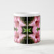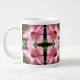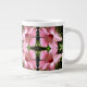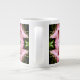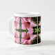 Sur cette tasse géante - réalisée à partir d'une photographie originale de HomeWare, des fleurs de hibiscus rose vif sont le sujet de ce motif original de jardin tropical avec un aspect "floral campagnard". Il y a quatre belles fleurs largement épanouies tournées vers l'intérieur depuis chaque coin. Les pétales des fleurs sont d'un rose très profond au centre, se courbant gracieusement vers l'extérieur tandis que les pétales passent à une couleur rose plus clair. Le fond est un motif composé de nuances de vert naturel des feuilles de la plante.