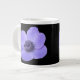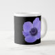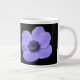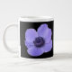 Cette énorme tasse présente une belle et détaillée photo d'une fleur d'anémone bleue. L'arrière - plan est noir pour rehausser la beauté de cette jolie fleur de printemps.