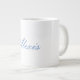 Grande Tasse Nom Calligraphie Script Simple Blanc Bleu