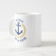 Une tasse à café géante personnalisée de 20 onces avec grade de capitaine ou autre titre, votre nom de bateau, nom de famille ou autre texte désiré. Doté d'une ancre nautique conçue sur mesure, de feuilles de lauriers de style or et d'un emblème d'étoiles. Fait un grand cadeau pour toute occasion.