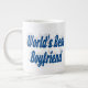 Mug avec le meilleur petit ami du monde en texte bleu marine 3D. Mug disponible en plusieurs styles et couleurs.