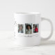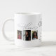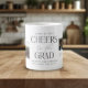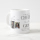 Offrez un cadeau de remise de diplômes sincère qui fonctionne comme quelque chose de pratique ainsi qu'un souvenir pour commémorer leur voyage. Le design présente un thème de collage photo "Alors et Maintenant" - puis sur le devant de la tasse et maintenant sur le dos de la tasse, avec trois photos de chaque côté. Sur le côté, "Cheers to the Grad" est élégamment stylisé dans la typographie moderne, associé à un texte personnalisé qui souligne le nom, l'année et l'école du diplômé. Design noir et blanc. Un cadeau photo personnalisé qui ne manquera pas d'être chéri! © Kimbellished, LLC