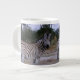 Double Take Zebras Nature Les photos et les cadeaux présentent une belle photographie de deux zèbres qui regardent tous deux le spectateur pris lors d'une pause snack par Kurt Keller avec un appareil photo de 35 mm pendant un safari africain au Botswana, en Afrique du Sud et au Zimbabwe. Chaque zèbre est unique porte son propre motif de rayures malgré la double prise. Quiconque aime les animaux africains, la faune et la flore, et tous les amateurs de zèbres apprécieront cette belle photo d'un deux zèbres debout dans la savane.