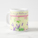 Une jolie tasse à taille Jumbo personnalisable, avec un motif de Roses roses, une Fausse Fleur orange crème et Lavande violette, d'une aquarelle peinte à la main par Judy Adamson.