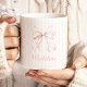 Cute & charmante tasse à café rose avec un design arrière - plan à rayures roses douces et une illustration fine de l'arc.