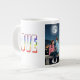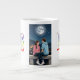 Un design romantique et rêveur de Mug de Café avec un jeune couple se regardant sous un ciel étoilé. L'expression paisible du couple et l'étonnant paysage urbain créent une image captivante et nostalgique.