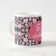 Colorful Stylish et élégant rétro vintage rose motif pour les plantes botaniques et les amoureux de la nature sur tasse à café coloré Géant pour anniversaire et vacances d'hiver 2022 cadeaux pour famille et amis. Cette conception est personnalisée et vous pouvez personnaliser pour ajouter leurs noms et leurs initiales lettres en utilisant une Calligraphie décorative et une simple typographie monographique personnalisée à l'intérieur d'un cercle de forme géométrique rose.