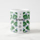 Grosse tasse à thème hivernal avec un motif de style nordique mignon avec des pulls épais, des casquettes, des mitaines, des chaussettes et des flocons de neige scandinaves dans les tons verts avec des accents bleus. Personnalisez le nom dans le bouton "Personnaliser" facile.