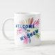 Cette grande tasse présente un feu d'artifice coloré et un design de texte qui ressemble à un éclatement du feu d'artifice. Vous pouvez customiser le contenu du texte et la couleur, ainsi que la couleur du feu d'artifice selon vos préférences.
