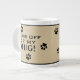 LA tasse géante pour amoureux de les chiens. "Poings off of my MUG" en texte noir Mug est recouvert d'empreintes de pattes noirs aléatoires. Le design se lit pour la main GAUCHE. La liste est également disponible à droite. La couleur Arrière - plan est de couleur cappuccino, mais peut être customisé dans l'outil de conception à la couleur de votre choix. La couleur du texte est noire et peut également être customisée dans l'outil de conception à la couleur de votre choix.Envoyez un courriel à beachpausedesigns@gmail.com pour toute question ou assistance concernant cette conception.