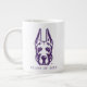 Ce design est un gros plan de la tête de mascotte de l'Université d'Albany Great Dane. L'illustration utilise des contours violets audacieux avec une ombre détaillée en gris pour le visage du Grand Danois, en soulignant ses caractéristiques angulaires. Les yeux sont tranchants, et l'expression véhicule la vigilance et la force. Des accents d'or apparaissent de part et d'autre de la mâchoire du chien, ajoutant une touche de chaleur à l'aspect par ailleurs féroce. Les oreilles sont droites et pointues, ce qui renforce le sentiment de disponibilité et d'autorité du logo. Le design est minimal mais puissant, idéal pour marquer l'identité athlétique d'UAlbany.