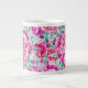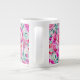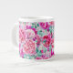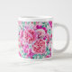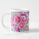 Grande Tasse Watercolor Lush Pink Peonies & Green Teal Leaves