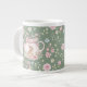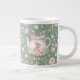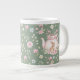 Whimsical Bunny Teapot Floral Spring Giant Coffee Mug. This design features a delightful whimsical bunny nestled within a pink teapot, surrounded by spring blossoms and green foliage. This floral pattern brings a touch of spring magic to your everyday sips. Perfect for tea, coffee, or hot cocoa, it makes a delightful gift for Easter, Mother's Day, birthdays, or any occasion for a bunny lover.
