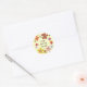 Des autocollants de fête d'anniversaire rond dans le design de grandes fleurs. Bordure florale artistique, funky, rétro avec modèle texte au centre.