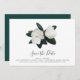 Moderne floral enregistrer la carte date dispose d'une disposition de texte simple et minimaliste surmonté d'une paire de gracieuses fleurs de magnolia blanches et de feuilles vert foncé luxuriants.