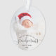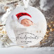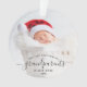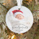 Help them celebrate their first grandchild with this beautiful modern keepsake ornament. The off-black text reads "Our first Christmas as grandparents," with the word "grandparents" in elegant handwriting script with flourishes before and after. Easily replace the sample image with your favorite photo of the new baby, and add his or her name and the year. A white gradient filter helps make the text pop.