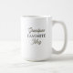 A serene coffee mug that says, "Grandpa's Favorite Mug" but the text can be personalized to any name or family member. The illustration is an a-frame log cabin out in the mountains and woods with a deer next to a rippling stream.