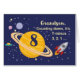 8 ans est hors de ce monde, surtout quand c'est votre petit-fils ! Bateau à fusée, planètes et étoiles remplissent à l'avant de la carte avec le message que vous comptez pour dire Joyeux Anniversaire!