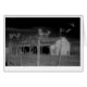 Photo infrarouge noir et blanc de bois de cerf et grange dans le ranch du Texas.