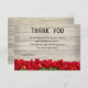 carte de remerciements mariage, avec un mur de grange patiné rustique, frondée de tulipes rouge vif