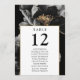 Ces numéros de table de mariage floraux noirs et blancs élégants peuvent être personnalisés avec les noms de vos invités en typographie moderne. Conçu par Thisisnotme©