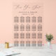 Carte mariage moderne avec "Welcome" affichée en haut dans un élégant script de calligraphie noir avec un arrière - plan acrylique transparent. Personnalisez le tableau de sièges minimaliste avec vos noms, votre date de mariage et vos noms d'invités pour vos 20 tables. Le tableau de sièges en acrylique est coordonné avec notre collection de mariages Modern Elegant.