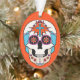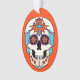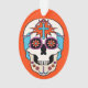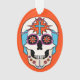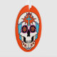 Cette illustration graphique présente un crâne à sucre illustré, ou calavera, décoré de perles et de fleurs ainsi qu'une croix chrétienne sur chaque front. Ce motif est couramment utilisé lors des célébrations du Jour des Morts ou Dia de los Muertos, un jour férié latino-américain.