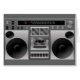 ghetto cool de style hip-hop rétrospectif, flaster boom box radio graphique. Nuances de gris argenté et de noir avec un magnétophone à cassette simple et réglage radio. Les gros haut-parleurs ont l'air que vous allez piloter un peu de basse.